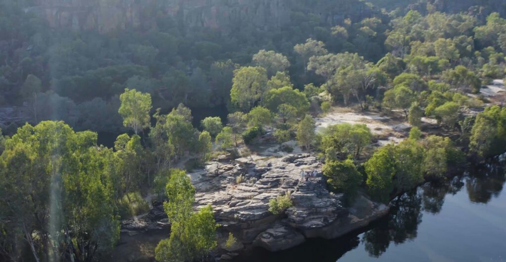 岩場や滝、ワニや野鳥などが暮らす湿地帯など、変化にとんだ自然の地形がこの土地の魅力です。また、数万年前にこの地で暮らした先住民が岩壁に描いたアートを見ることができます。